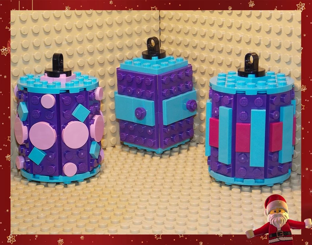 LEGO Karácsonyfadísz 16 - Lila világ: LEGO elemekből épített, egyedi készítésű Karácsonyfadísz csomag. A csomag 3 db különböző formájú, hasonló színű gömböt tartalmaz. A díszek kizárólag új alkatrészekből készültek. A csomagokat összeszerelt állapotban szállítjuk, lehegesztett buborékfóliás tasakokban. A termék összeszerelési útmutatót nem tartalmaz.