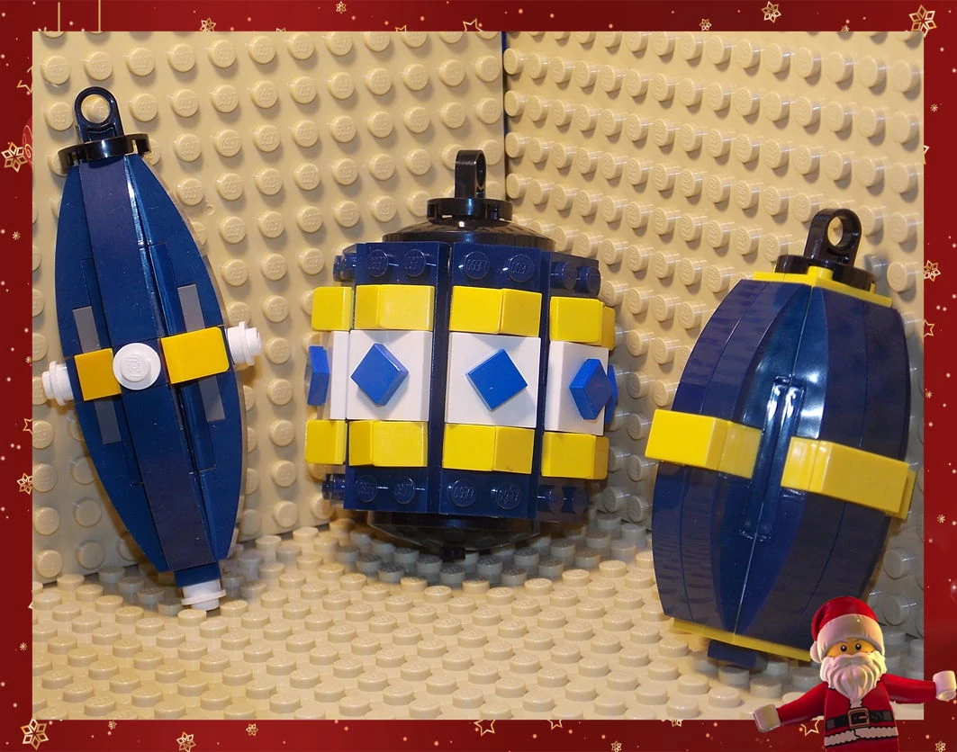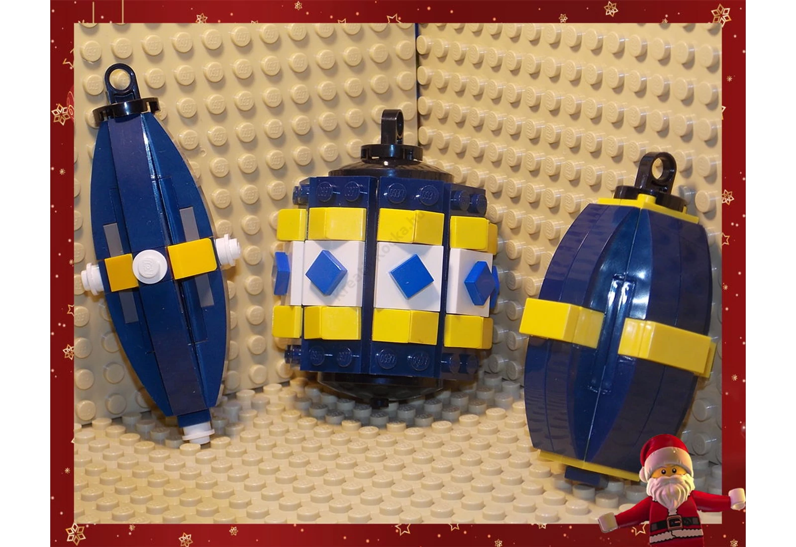 LEGO Karácsonyfadísz 19 - Éjkék: LEGO elemekből épített, egyedi készítésű Karácsonyfadísz csomag. A csomag 3 db különböző formájú, hasonló színű gömböt tartalmaz. A díszek kizárólag új alkatrészekből készültek. A csomagokat összeszerelt állapotban szállítjuk, lehegesztett buborékfóliás tasakokban. A termék összeszerelési útmutatót nem tartalmaz.