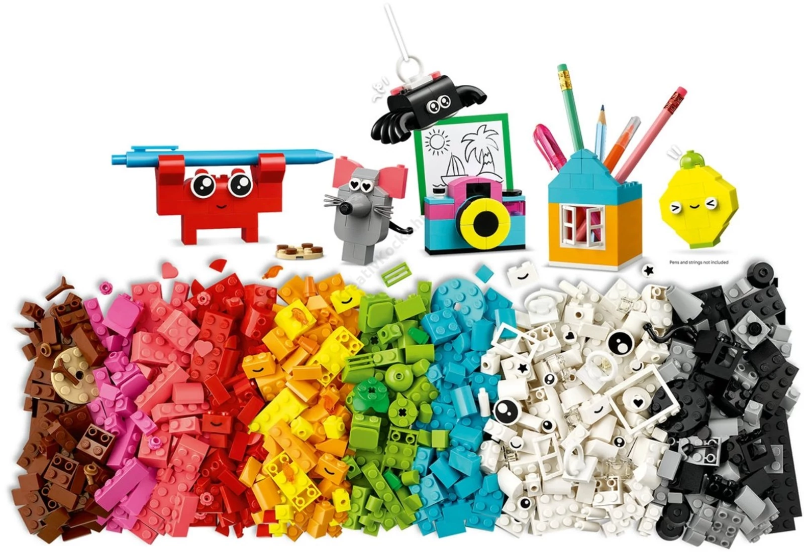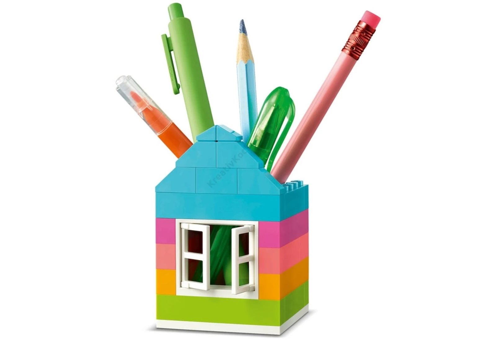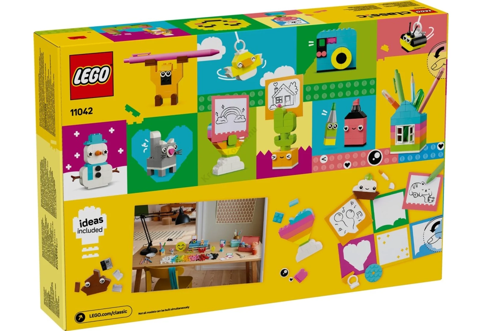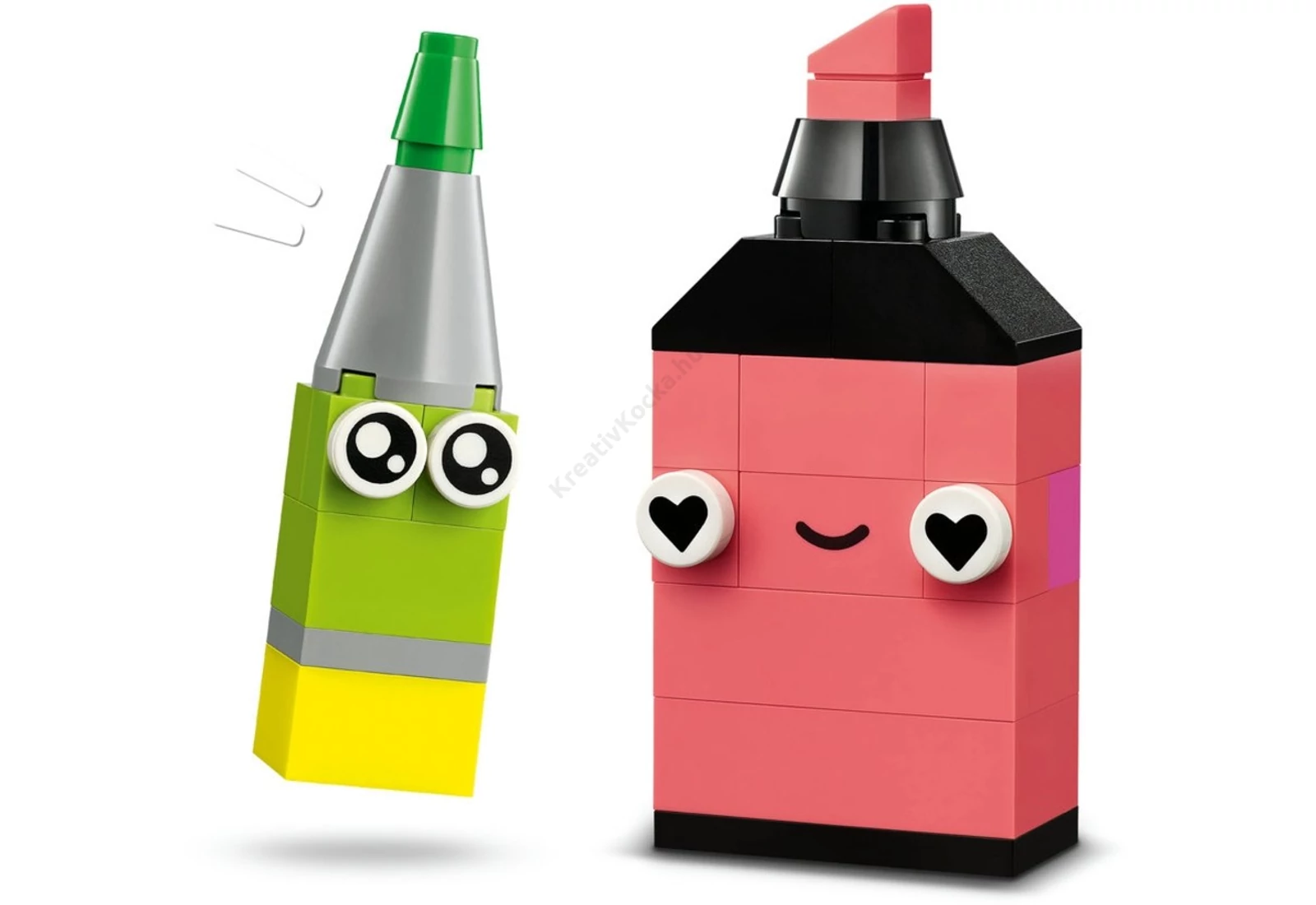 Kreatív vidámságdoboz! Legyen a LEGO Classic Kreatív vidámságdoboz (11042) remek kezdet egy ifjú építő számára! A 680 színes kockával, speciális elemmel és az inspiráló útmutatóval a vidám építés sosem ér véget. A kreatív vidámságdobozban építési javaslatokat találsz 10 gyorsan megépíthető modellhez, amelyek mindegyike a felhőtlen vidámságot idézi. A gyerekek ezeket a modelleket 12 másik játékká építhetik át, majd addig szabhatják őket testre, amíg végtelen sok egyedi alkotást nem készítenek, hogy olyan vidám és hasznos tárgyakkal díszíthessék a szobájukat, amelyeket ők maguk készítettek. A pók-, méhecske- és madárjátékokat akasztóelem segítségével lehet kiállítani. A rák-, majom- és házikómodellek apró tárgyak, mint például egy toll vagy egy fogkefe, tárolására alkalmasak. A virág-, fényképező-, kiemelő-, szív- és kaktuszmodell csíptetős elemmel van felszerelve, így a gyerekek jegyzeteket, kártyákat vagy képeket rögzíthetnek hozzájuk (a készletben színes papírt is találsz). Olyan modellek is várnak még rájuk, mint egy macska, egy egér, egy citrom, egy kukac vagy egy mosolygós arc. Szerezz örömet ezzel a vidám és praktikus szettel, és inspiráld a gyerekek kreativitását.