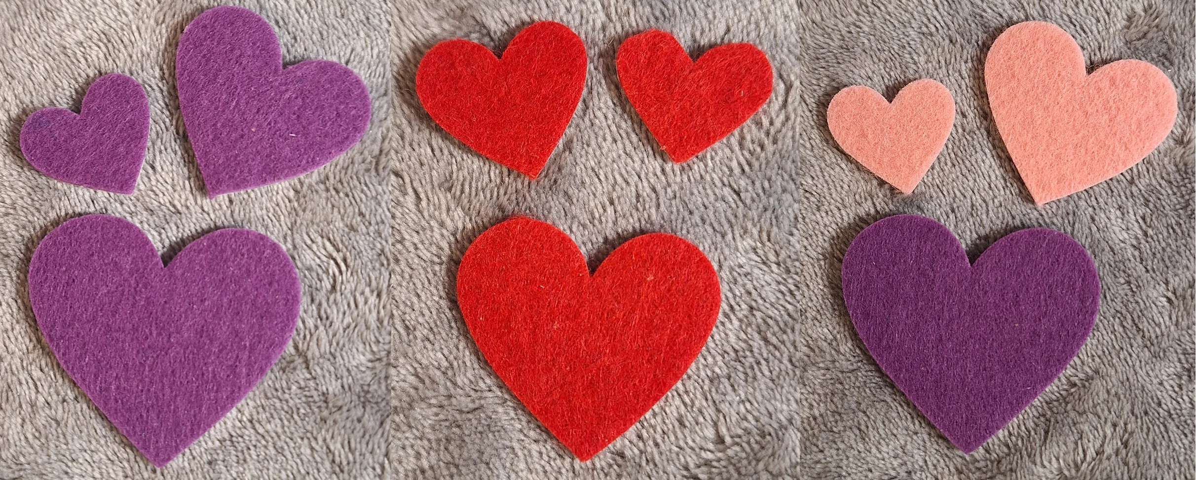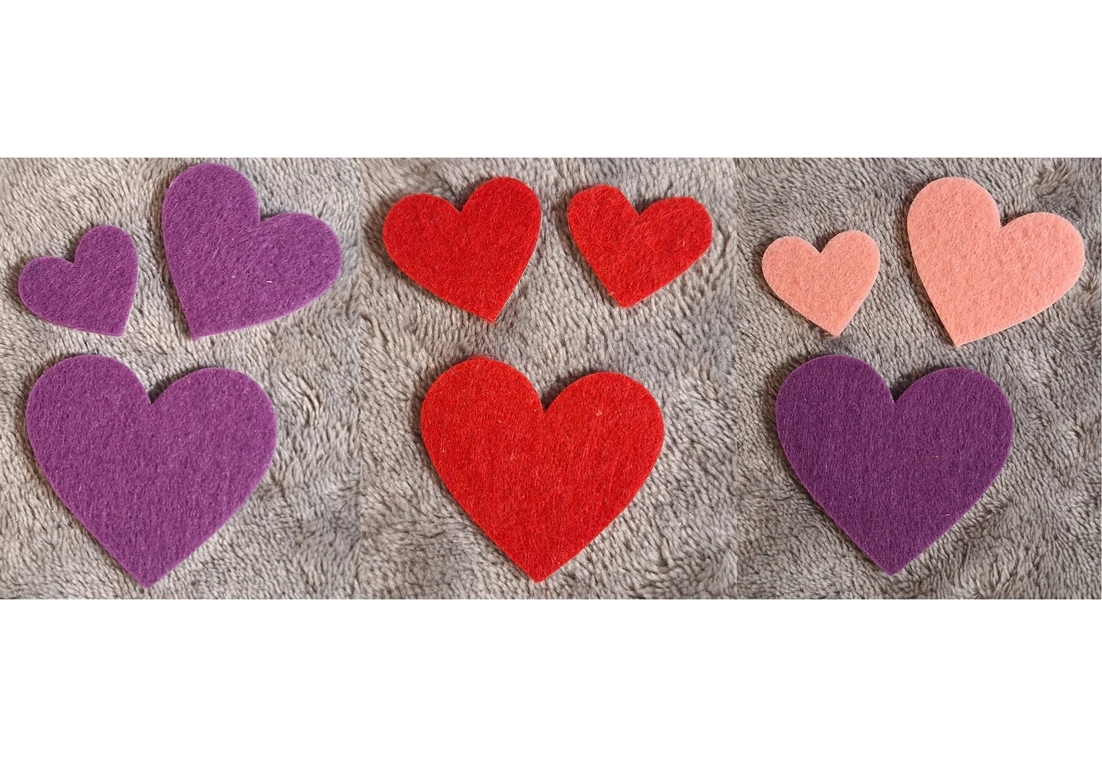 Barkácsfilc - szivecskék (sötétlila): méret: 2,5 cm, 4 cm és 5,5 cm