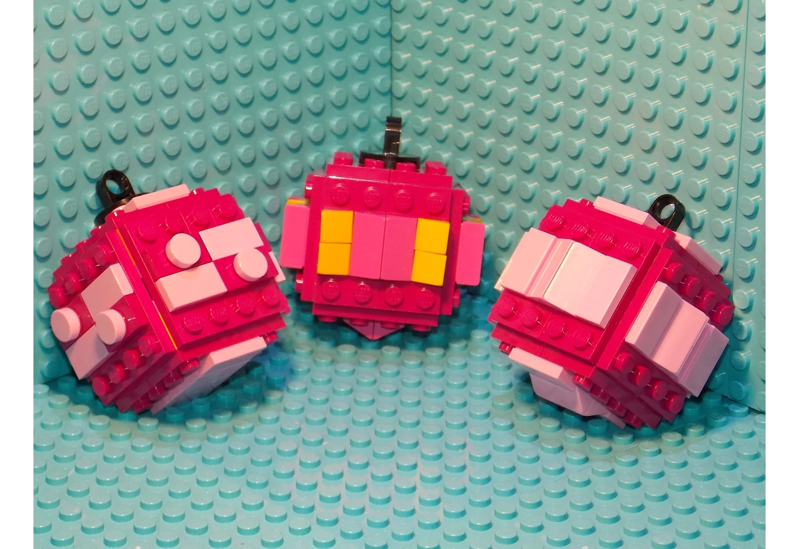 LEGO Karácsonyfadísz 48 - Bíborvörös: LEGO elemekből épített, egyedi készítésű Karácsonyfadísz csomag. A csomag 3 db különböző formájú, hasonló színű gömböt tartalmaz. A díszek kizárólag új alkatrészekből készültek. A csomagokat összeszerelt állapotban szállítjuk, lehegesztett buborékfóliás tasakokban. A termék összeszerelési útmutatót nem tartalmaz.