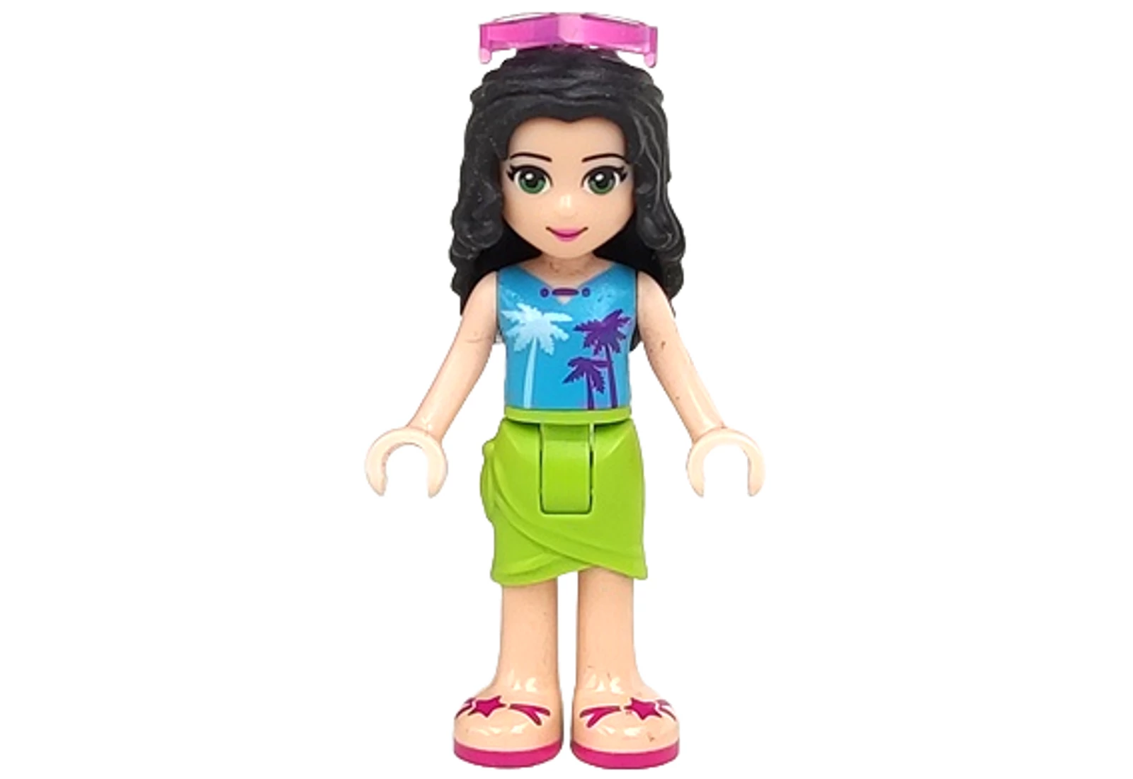 Friends Emma - Lime Wrap Skirt, Medium Azure Top with Palm Tree Pattern, Trans-Dark Pink Sunglasses